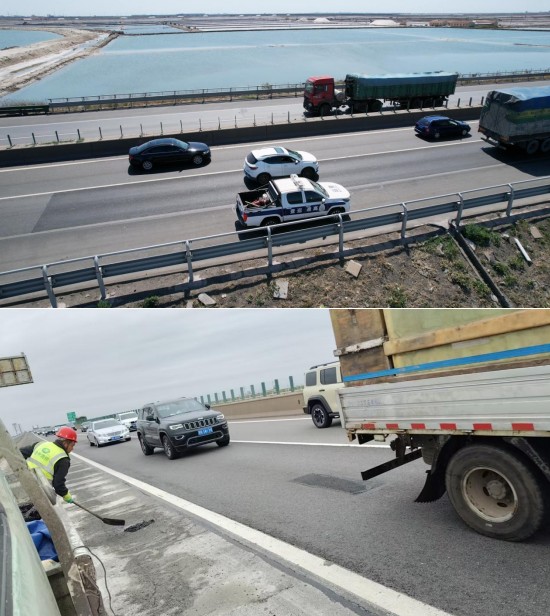 二、守護“生命線”,力保全程“不斷流”?!半p節(jié)”期間,沿海分公司職工堅守各崗位,嚴格執(zhí)行24小時值班制度和領(lǐng)導帶班制度,以“在崗一分鐘,盡責六十秒”的擔當,守護道路暢通。節(jié)前及假期,分公司領(lǐng)導班子靠前指揮,帶領(lǐng)業(yè)務(wù)部室人員下沉一線進行安全保暢督導,推動各項安全保暢措施落到到位。各收費站在崗人員全員上崗,車道全開,疏導員穿梭車流,引導客貨分行,ETC車道高效運轉(zhuǎn),通行效率大幅提升。道路養(yǎng)護中心采用“路面+無人機+視頻”三維立體巡查模式,累計開展道路巡查40余次,無人機巡檢9次,巡查里程超4500余公里,投入保暢人員170余人次,清理散落物210余次,對雨天路面水毀病害進行應(yīng)急搶修5次,全力保障社會公眾安全出行。